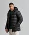 The Solitude recycled hooded jacket delivers padded perfection with sleek chevron side quilting for a contemporary look. Thoughtfully constructed with both internal and external pockets, it provides practical storage for essentials, on the go. Padded sleeves and soft, rib knit cuffs enhance warmth and comfort, making it a reliable choice for outdoor activities, cold-weather commutes or everyday wear.