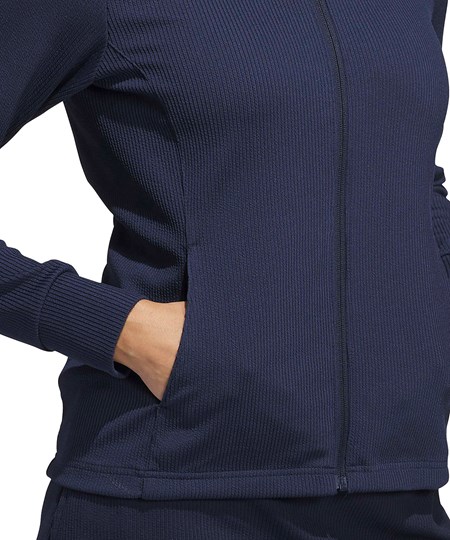 Step onto the green in the Women’s performance texture full-zip jacket. Designed for those who appreciate the precision of golf, this jacket offers a regular fit that’s neither too tight nor too loose, making it perfect for a day on the course. Crafted with a double-knit construction, it brings comfort to your swing. The zip closure provides easy on-and-off wear, ideal for quick adjustment between shots. With its sleek design, this jacket complements your golfing attire while keeping you comfortable. Whether you’re teeing off or enjoying a leisurely round, it’s your go-to choice for a refined look. Elevate your game with adidas – where performance and style are always in sync.