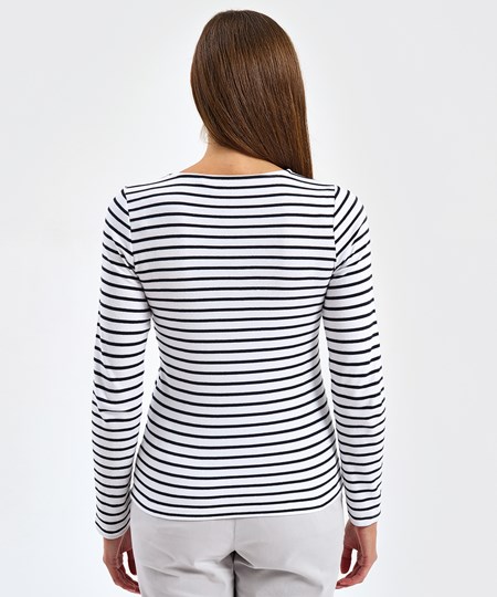 A classic wardrobe favourite, the women's marinière coastal tee features a clean wide neckline, long sleeves and feminine fit making it an easy, versatile piece you'll come back to again and again.