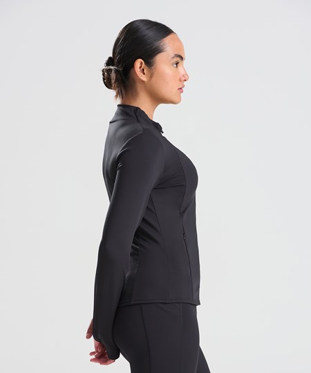 Built to move, the Women’s recycled tech-zip jacket features a slim fit with four-way stretch fabric for unrestricted motion. Wicking, quick-dry technology keeps you comfortable, while zipped pockets secure your essentials. Finished with thumbholes at the sleeves and a tear-away label. Made with recycled polyester.