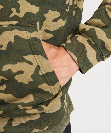 Stay on-trend with this wardrobe superstar, featuring an all-over camouflage design. This fashionable hoodie will add unique style to your casual look.