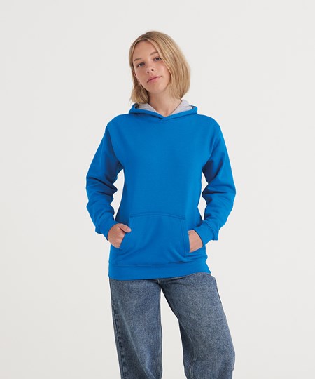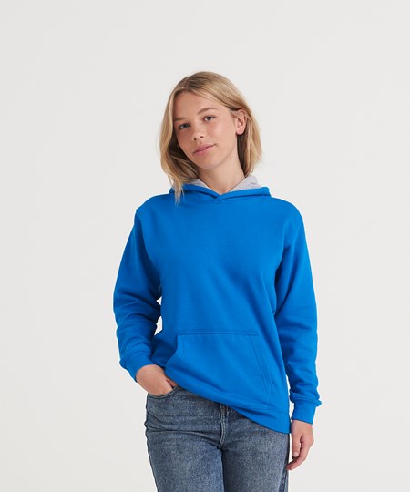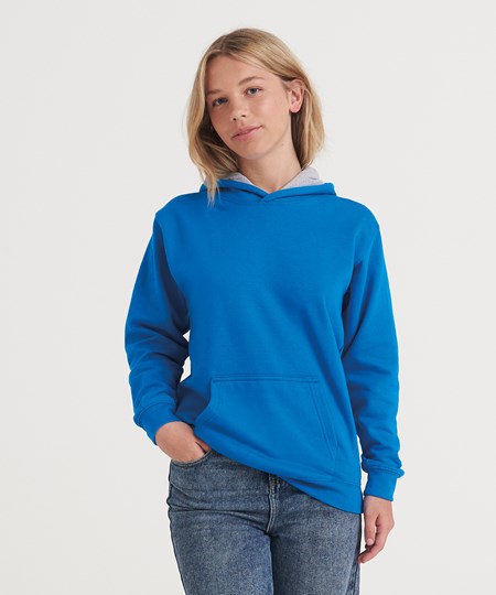 An essential hoodie for kids, it features a double fabric hood with contrast inner and is made from soft cotton faced fabric for extra warmth.