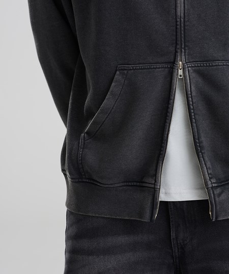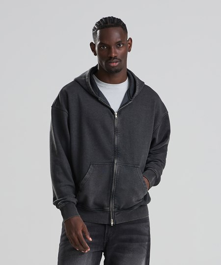 The Vintage washed zoodie combines an oversized fit with a washed finish for a laid-back, street-ready look. Featuring a full-zip, double-layer hood and French terry inner, it’s designed for everyday wear. Ribbed cuffs and hem add structure, while the kangaroo pouch pockets, locker patch and size label only make it perfect for easy rebranding. Made with cotton and recycled polyester.