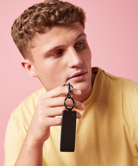 Personalise your Boutique collection with these interchangeable and customisable key clips. Designed for ease of decoration, this 100% leather-look design can be used as a keyring or bag charm. Fine grain Saffiano fabric gives a luxurious finish, while a high-shine, gold metal key clip adds to the premium quality. Also available in circular (BG745) and heart-shaped (BG746) styles.