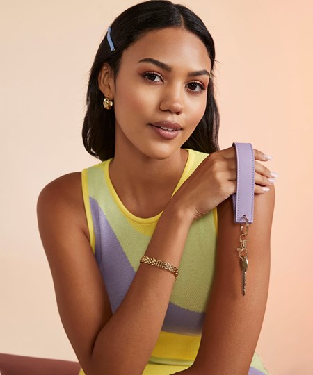 Take personalisation to new heights with this interchangeable and customisable keyring, available in a prism of pop colours. Fine grain Saffiano fabric gives a premium finish, and it’s super-comfortable when worn around the wrist for hands-free styling. Personalise beyond the Boutique collection by clipping onto any other compatible design.