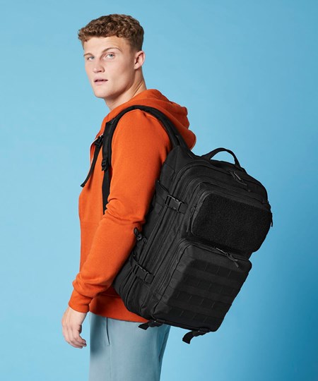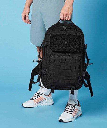 With its 35-litre capacity, the BG850 is extremely generous when it comes to storage space, but still comfortable when carrying thanks to its oversized ergonomic straps, padded back panel and fully adjustable chest strap. This military-inspired design features MOLLE webbing loop details, compression straps and a large top carry handle, as well as a full Rip-Strip™ front pocket designed for optimal customisation with interchangeable patches. As well as a large main compartment, the BG850 also has internal mesh pockets, multiple zippered front pockets, a padded laptop compartment and two tight-knit stretch mesh bottle/shaker pockets. This is an all-purpose backpack ready to take on everything from the commute to the gym.