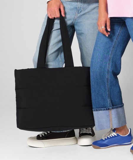 The Quilted tote bag brings sports-luxe styling into everyday life. Soft, padded quilting and ruched handles add tactile detail to its clean, modern silhouette. Lightweight yet elevated, it’s finished with a magnetic closure, lined interior and a hidden decoration zip for a smooth, premium look. Designed for effortless decoration, this tote balances comfort with street-ready style.