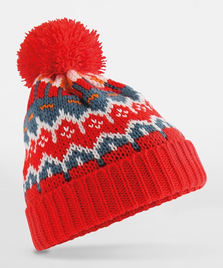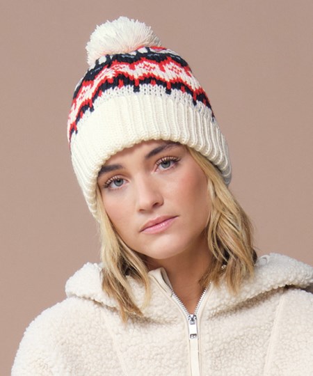 Inspired by classic alpine style, the Retro ski beanie blends vintage charm with modern winter comfort. Featuring a traditional Fair Isle knit and soft-touch self-coloured pom pom, it’s fully lined with recycled microfleece for added warmth. The cuffed design provides a clear area for decoration, making it ideal for après-ski styling, seasonal collections and retro-inspired ranges.