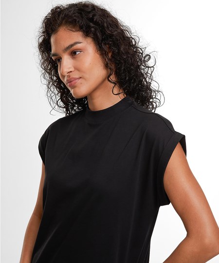 The Women’s Sorona long extended shoulder dress is an elegantly long dress with a modern silhouette and extended shoulder area. It’s particularly soft and stretchy, ensuring a high level of comfort. The Sorona® fibre gives the dress excellent resilience to heat and UV.