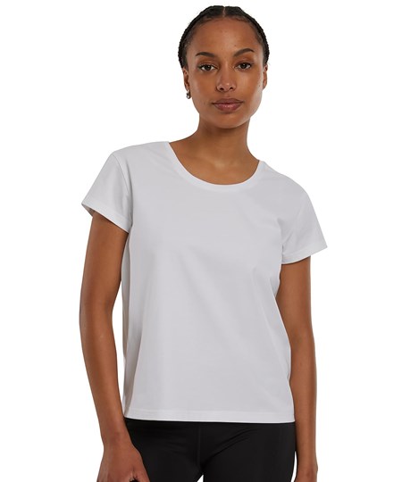 The women’s Sorona® regular tee combines sustainability with a feminine design. Its flattering fit, along with the exceptional softness of the Sorona® fibre, make this t-shirt a favourite for any occasion. Breathable, easy to care for and long-lasting in shape, it’s the perfect companion for everyday wear and leisure. Innovative Sorona® fibre is made largely from plant-based materials and is renowned for its remarkable properties in terms of sustainability and performance. It’s derived from renewable resources and requires less energy to produce when compared to traditional synthetic fibres. Exceptionally lightweight and soft, it offers outstanding elasticity, ensuring long-lasting comfort. It’s also easy to care for and is quick-drying, retaining its shape and texture even after multiple washes. Thanks to these qualities, Sorona® is ideal for creating functional yet stylish garments that meet the highest standards of comfort and sustainability.