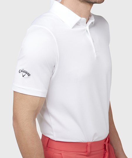 This Swing Tech™ polo features moisture/wicking and cooling technology to keep you dry and cool. Easycare machine washable. Featuring a self/collar and 3/button placket. Callaway Tour logo embroidered on the right sleeve in contrast colours and a tonal Chev on the inside placket.