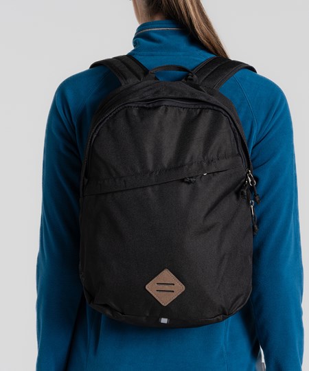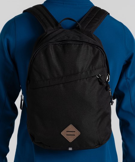 Cabin-size 14 litre backpack. Padded compartment for tablet (9”) and laptop (13”), plus padded shoulder straps and back panel for comfort. Reflective detail and café strap for security. 42cm x 26cm x 14cm.