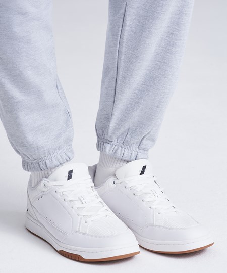 Diese klassische und bequeme Jogginghose ist mit Beinbündchen sowie mit einem elastischen Taillenbund mit weißem Zugband auf der Innenseite ausgestattet.