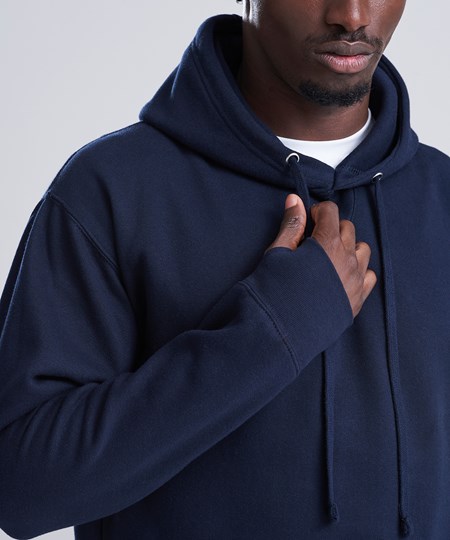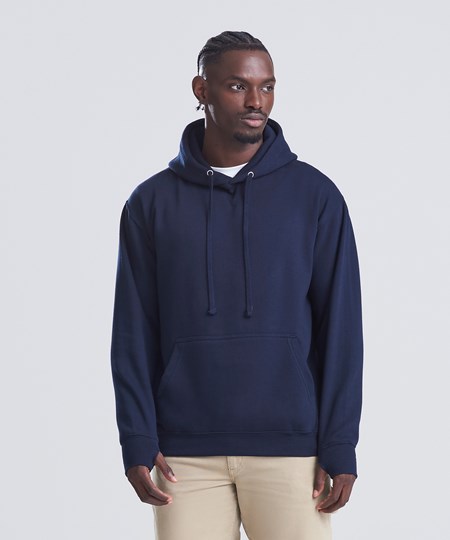 Dieses Street-Hoodie aus schwerem Gewebe hält Sie mit viel Stil warm. Es ist mit Daumenlöchern für einen modernen Look und einer Handytasche im Inneren der Kängurutasche ausgestattet.