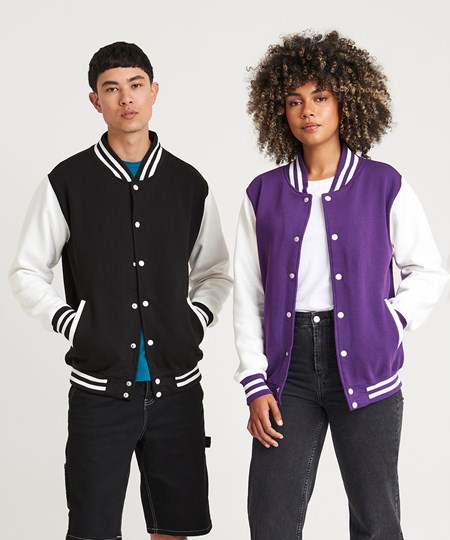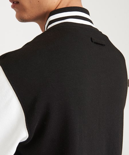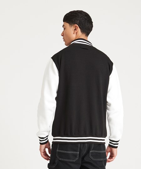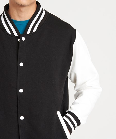 Mit dieser klassischen Jacke im amerikanischen Stil entscheiden Sie sich für den College-Look. Kontrastfarbene Ärmel und Druckknöpfe ergänzen diesen Look, der aus unserem schweren, ideal für Dekorationszwecke geeigneten Gewebe gefertigt ist.
