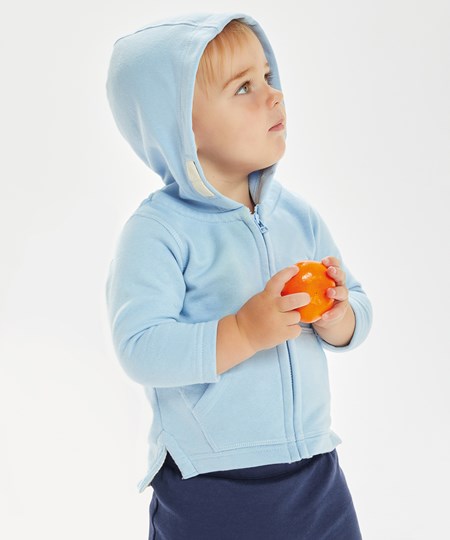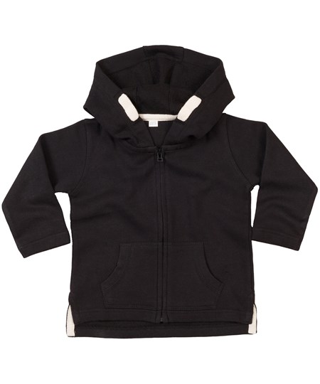 Kuschelige Baby-Kapuzenjacke mit geradem Saum und Kängurutaschen vorne. 3-teilige Kapuze für eine optimale Passform und mit modischem naturfarbenen angedeuteten Kordelzug.