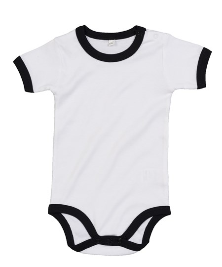 Superweicher Body mit kontrastfarbener Einfassung an Hals, Armen und Beinen.