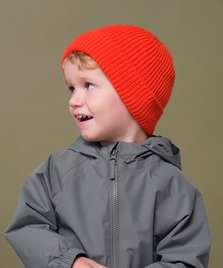 Die Kids Fashion Beanie B381B bringt Farbe in Schulhof-, Sport- und Retail-Kollektionen. Hergestellt aus einer Mischung aus recyceltem Polyester und Elasthan, bietet diese Stretch-Mütze ein weiches, einlagiges Rippstrickmuster für Flexibilität und Tragekomfort. Der breite Umschlag bietet eine verlässliche Fläche für Branding und ist damit ideal für Kinder-Streetwear-Marken.