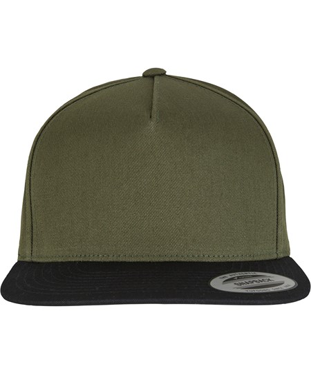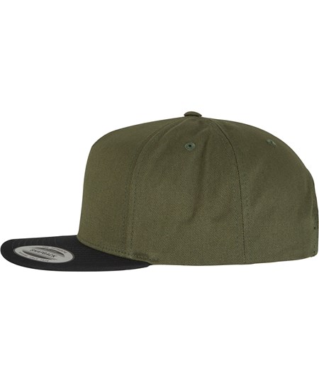 Ein 5-Panel Baumwoll-Köper Schirmmütze mit grünem, geradem Unterschirm. Ideal für Siebdruck und ein Teil der Klassiker Reihe von Yupoong® mit einem 43-jährigen Erbe.