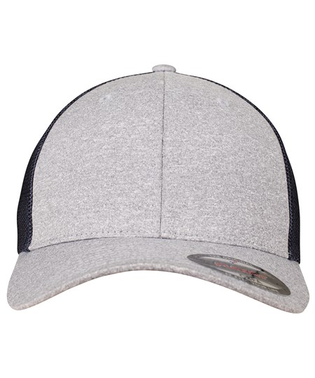 Patentierte Flexfit Melange Mesh. Angesagte Vorderseite in Melangefarben. Angenehme Passform. Vorderseite versteift. Schwarze Schirmunterseite.