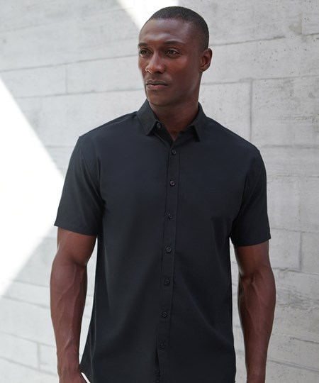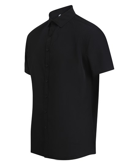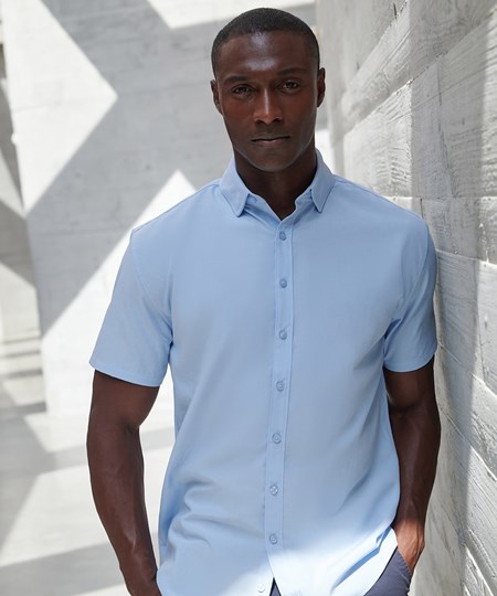 Ein Herren-Kurzarmhemd, das sich wie Baumwolle anfühlt und wie Polyester funktioniert. Der exklusive Hemdenstoff aus 100% Coolplus®-Polyester ist die neue funktionelle Abendgarderobe, die den ganzen Tag über kühlen Komfort bietet.