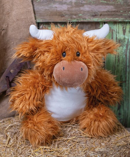 Von den schottischen Highlands direkt zu Ihnen - diese liebenswerte, weiche Hochlandkuh wird bei allen Altersgruppen beliebt sein. Sie hat aufgenähte Augen und einen Mund sowie Nase, Hörner, Mähne und Schwanz in Kontrastfarben. Auf dem Bauch befindet sich ein weißes Element, das sich perfekt zum Sticken, Flockdruck und Bedrucken mit Glitzer und Glitzer sowie zur Sublimation eignet. An der Basis befindet sich außerdem ein Reißverschluss für den direkten Zugang zum Bauch, sowie eine herausnehmbare innere Füllung. Das Produkt wurde nach EN71 geprüft und ist für alle Altersgruppen ab Geburt geeignet.