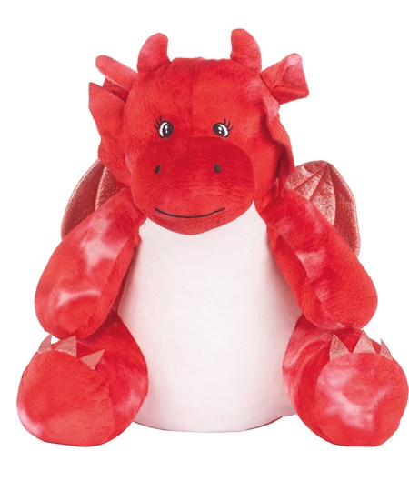 Mit diesem roten Plüschdrachen mit Reißverschluss können Sie Ihrer Fantasie freien Lauf lassen. Mit seinem leuchtenden Fell mit Batikmuster und seinen glitzernden Flügeln zeigt sich dieser sagenumwobene Drache gefährlich und knuddelig zugleich. Der Drache begeistert mit Zierstickereien, Augen und glitzernden Klauen. Ideal für Fans von Fantasy-Geschichten, Sammler und tapfere kleine Krieger. Der Bauch ist aus dünnerem Flor, um das Besticken oder Bedrucken zu erleichtern.