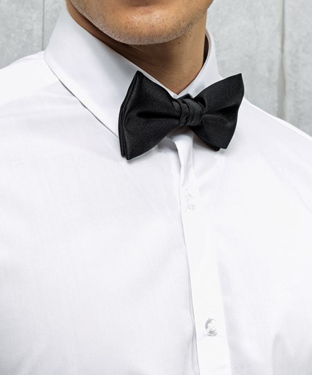 Eine Fliege mit einem Haken- und Ösenverschluss hinten. Das perfekte Accessoire für Kellner und Kellnerinnen, die bei ihrer Arbeit etwas formeller gekleidet sein müssen.