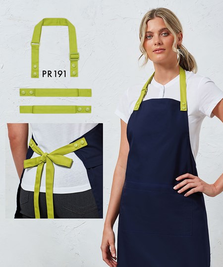 Eine innovative Möglichkeit, die ultimative maßgeschneiderte Schürze zu kreieren. Mischen und kombinieren Sie Farben, um Ihre Unternehmensmarke widerzuspiegeln, ohne eine maßgeschneiderte Option zu benötigen. Wählen Sie einfach Ihr Nackenband und die Bindebänder aus den hier verfügbaren 20 Farben aus, besuchen Sie dann das Schwesterprodukt PR190, um den Schürzenkörper aus den 10 angebotenen Farbtönen auszuwählen. Befestigen Sie dann die Bänder mit den starken Druckknöpfen am Körper, und schon sind Sie startklar! Diese 'swap and pop' Lösung bedeutet, dass es über 200 mögliche Kombinationen gibt, die Sie erstellen können. Hergestellt aus zertifiziertem recyceltem Polyester.