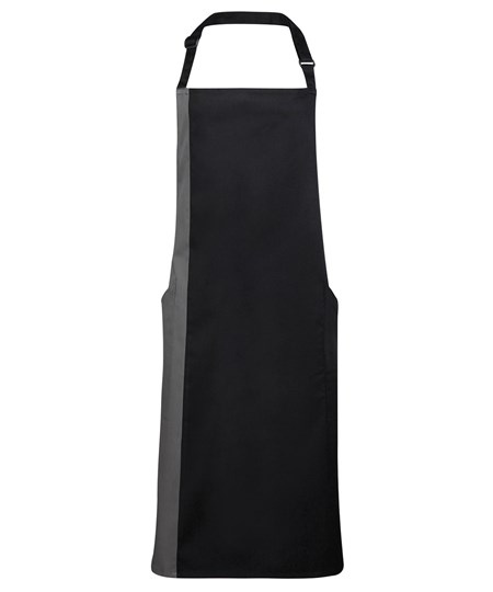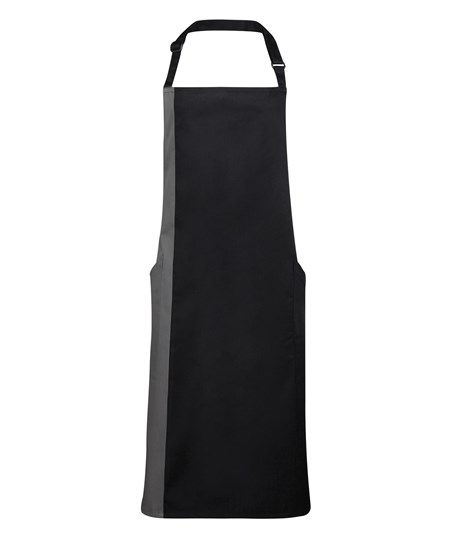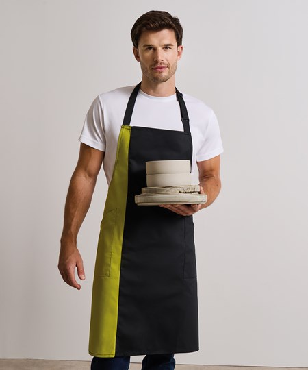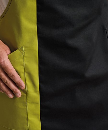 Eine klassische Latzschürze mit Kontrasteinsatz auf der rechten Seite und somit eine ideale Wahl für Brandingzwecke. Die für diese Schürze verwendeten Farben sind Teil der 'Colours Collection' von Premier. Zwei abgeschrägte Seitentaschen und eine Schnalle an der Halsschlaufe zur Größeneinstellung.