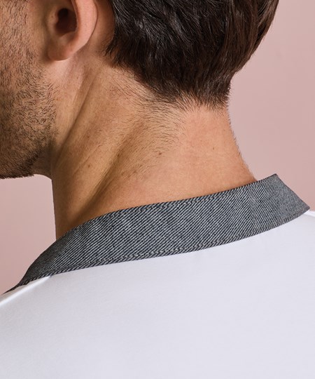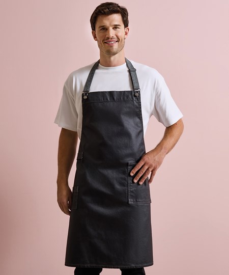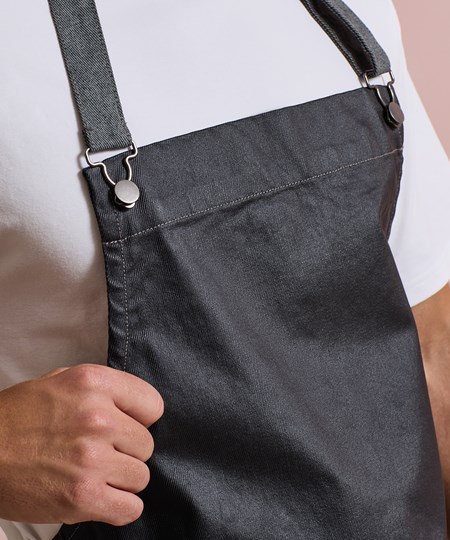 Eine Latzschürze mit Stilelementen die von Ihrer Lieblingsjeans geborgt sind! Die extragroße aufgesetzte Tasche mit klassischen Steppnähten bietet genug Platz für ein Tablet an. Der Wachseffekt sorgt für eine robuste „Industrial“-Optik, die wunderbar zum Stil vieler moderner Restaurants passt.