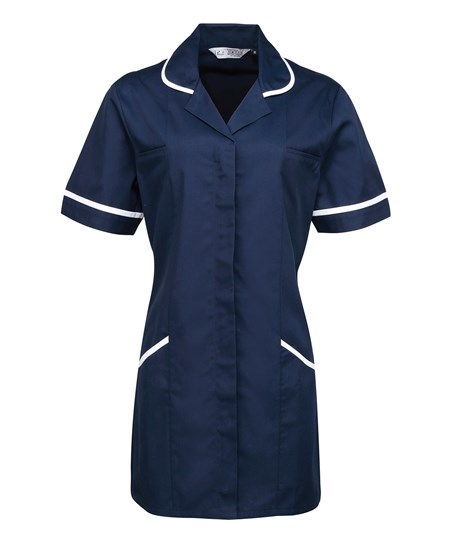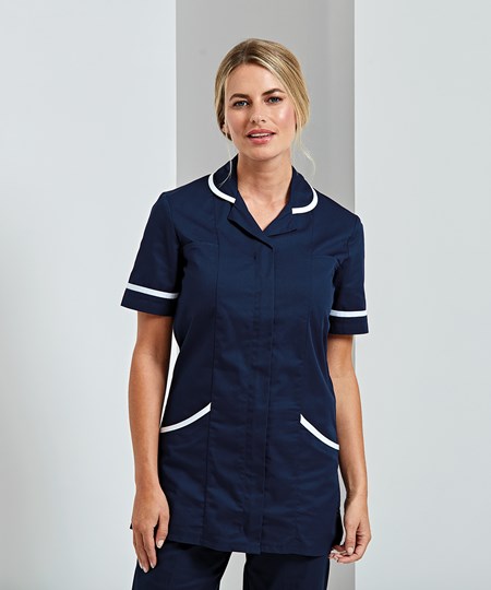 Die Tunika für die Gesundheitsbranche "Vitality" von Premier zeigt Stil mit kontrastfarbig paspelierten Kanten am Kragen, an den Manschetten und an der Tasche. Die an den Seiten und am Rücken vorgesehenen Falten sorgen für eine schmeichelhafte Passform, während die abgeschrägten Seitentaschen und die Stifttaschen mit PU-Futter die praktische Seite dieser Tunika für den Gesundheitsbereich erhöhen.