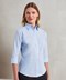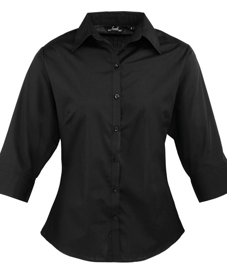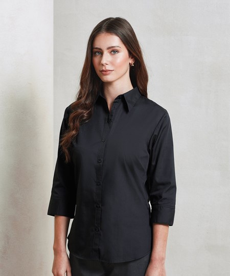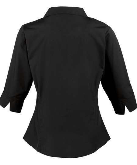 Leicht taillierte Damenbluse mit modischem Dreiviertel-Arm. Der Ärmel ist mit einem geschlitzten Bündchen abgeschlossen, während die Abnäher an Brust und Rücken für eine schmeichelhafte, figurbetonte Passform sorgen.