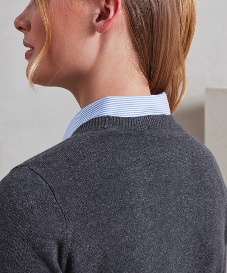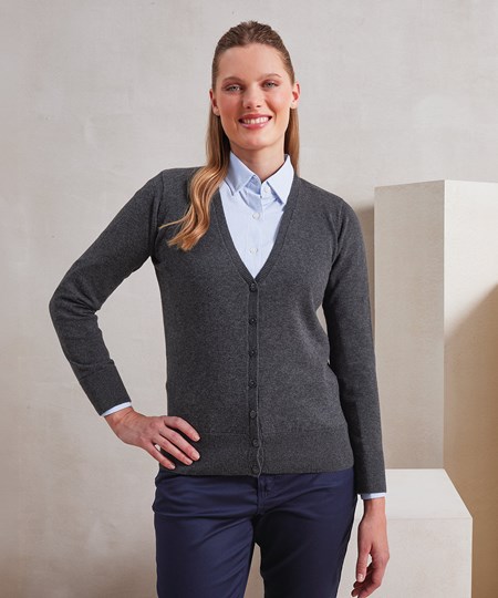 Die langärmelige siebenknöpfige Weste mit V-Ausschnitt von Premier ist aus besonders weicher und angenehmer Wolle mit hohem Baumwollanteil. Diese Jacke ist eine praktische und modische Kombinationsmöglichkeit zu einer Bluse.