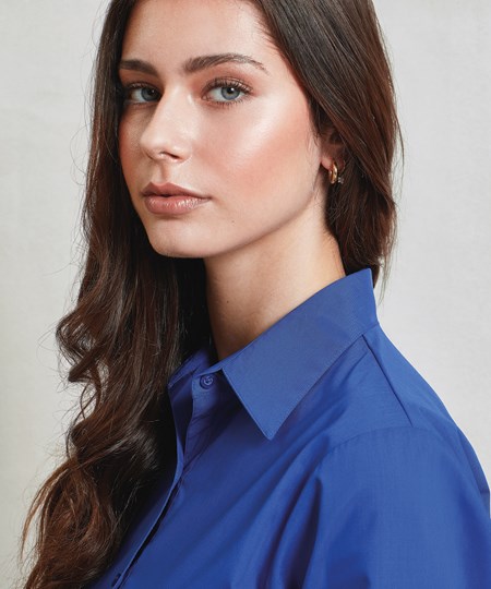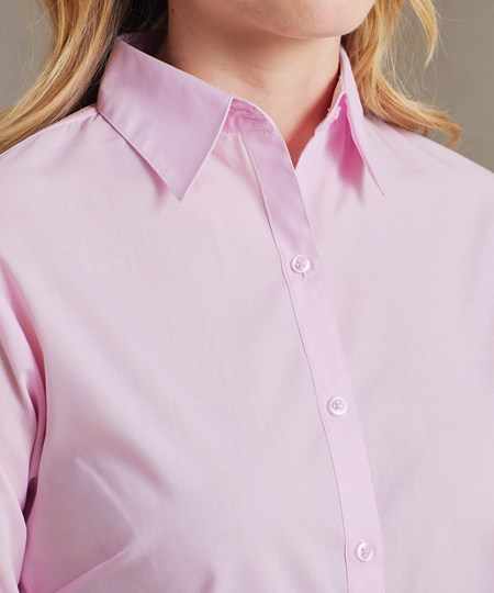 Diese elegante, langärmelige Damen-Popeline-Bluse ist in 27 Farben aus der 'Colours Collection' von Premier erhältlich. Sie überzeugt mit einer leicht taillierten, femininen Passform, einem weichen Kragen , Abnähern an Brust und Rücken und einem abgerundeten Saum. Eine tolle Allround-Bluse für den Arbeitsalltag.