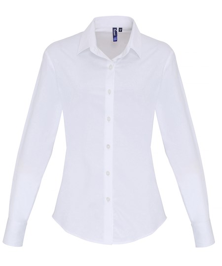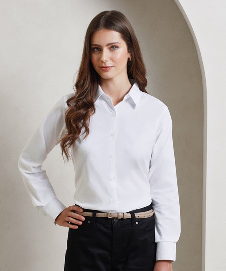 Die Signature Oxford-Langarm-Bluse von Premier ist aus Oxford-Gewebe mit hohem Baumwollanteil und sorgt für einen eleganten und professionellen Auftritt. Diese reizende Bluse für den Arbeitsalltag besticht mit einer figurbetonteren Passform mit Brust- und Rückenabnähern, einem abgerundeten Saum und einem weichen Kragen.