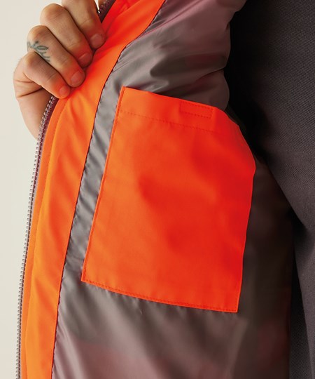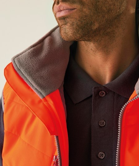 Diese zweifarbige Thermoweste mit reflektierenden Details von Regatta Professional zeichnet sich durch Komfort, Sichtbarkeit und Strapazierfähigkeit aus. Die Arbeitsweste für Herren ist aus Polyester mit 4-Wege-Stretch und wasserabweisendem Finish gefertigt und mit zuverlässig warmer Warmloft-Isolierung mit 160 g/m² ausgestattet. Sicherheitszertifizierung und dunklere Kontrasteinsätze für schmutzige Umgebungen.