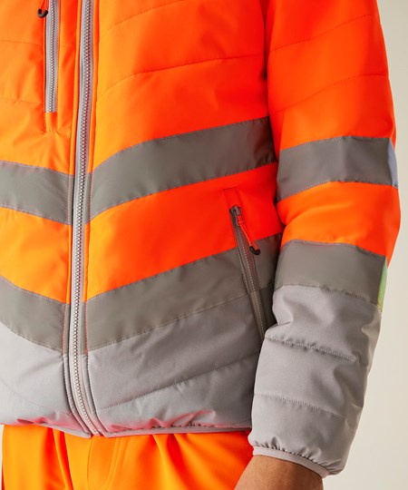 Die zweifarbige Thermojacke mit reflektierenden Details von Regatta Professional sorgt dafür, dass Sie nicht übersehen werden. Die Jacke aus strapazierfähigem Hydrafort-Polyester ist wasserdicht gemäß EN ISO 20471 Klasse 2 und bietet Funktionalität unter besonders anspruchsvollen Bedingungen. Für die zuverlässige Wärme sorgt die Thermo-Guard-Isolierung, während die schräg sitzenden ID-Reflektoren bei Dunkelheit die Sichtbarkeit erhöhen.