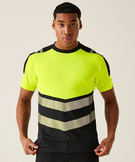 Das X-Pro Men’s Hi-Vis T-Shirt von Regatta Professional vereint Style und Innovation. Das Arbeits-T-Shirt besteht aus einer strapazierfähigen, aber weichen Mischung mit Bambus und Polyester. Die Mesheinsätze unter den Armen sorgen zusammen mit dem antibakteriellen Finish für ein frisches Tragegefühl. Dieses Arbeits-T-Shirt mit Hi-Vis-Eigenschaften erfüllt verschiedene Sicherheitsvorschriften. Die ID Reflection Technologie macht Sie gut sichtbar. Dieses Arbeits-T-Shirt mit Hi-Vis-Eigenschaften und Lichtschutzfaktor 40+ schützt vor schädlichen UV-Strahlen.
