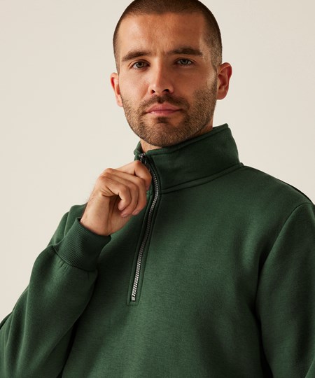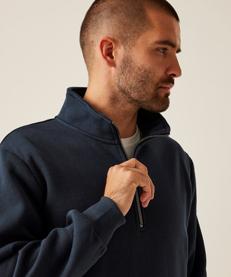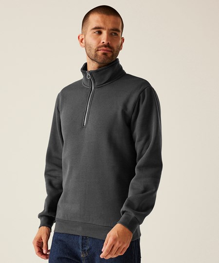 Das Pro Sweatshirt mit viertellangem Reißverschluss von Regatta Professional ist der ideale Layer für die Arbeit. Dieser Herren-Arbeitspullover besteht aus nachhaltiger Baumwolle und Polyester für langanhaltenden Tragekomfort. Ziehen Sie den Reißverschluss nach unten für sofortige Belüftung.