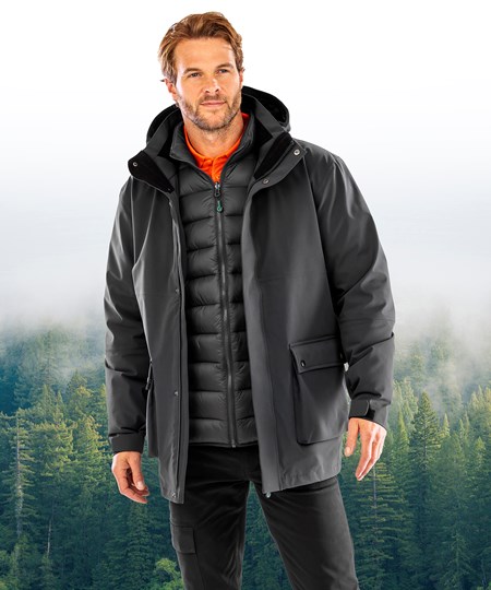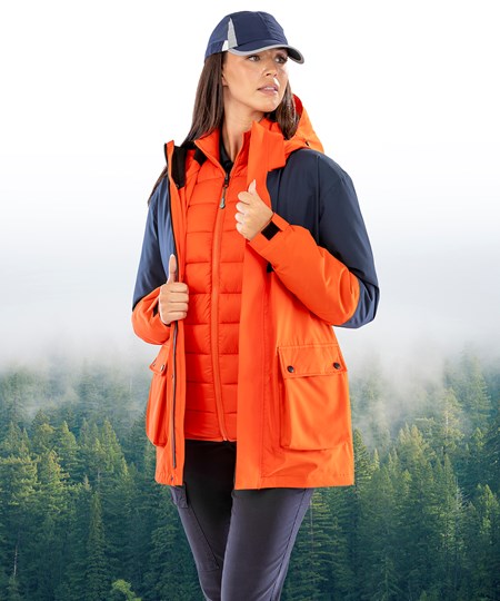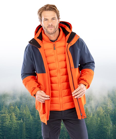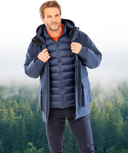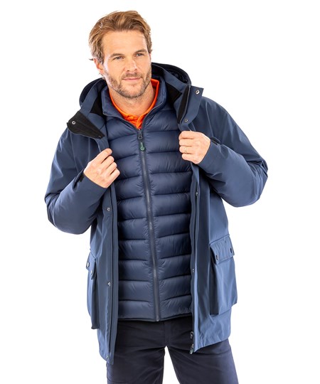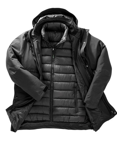 Warm, vielseitig und praktisch. Diese gemütliche, weiche und luxuriöse 3-in-1-Jacke besteht aus einer wasserdichten Außenjacke und einer wattierten Innenjacke, die separat oder zusammen getragen werden können. So sind Sie immer warm und wettergeschützt.
