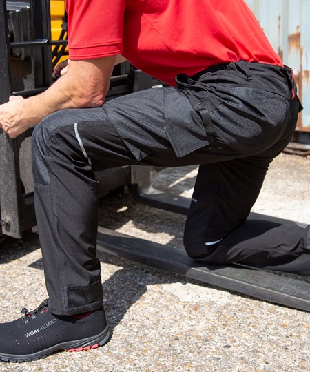 Perfekte Arbeitshose aus elastischem Soft Shell Material mit einer schmaler Passform.