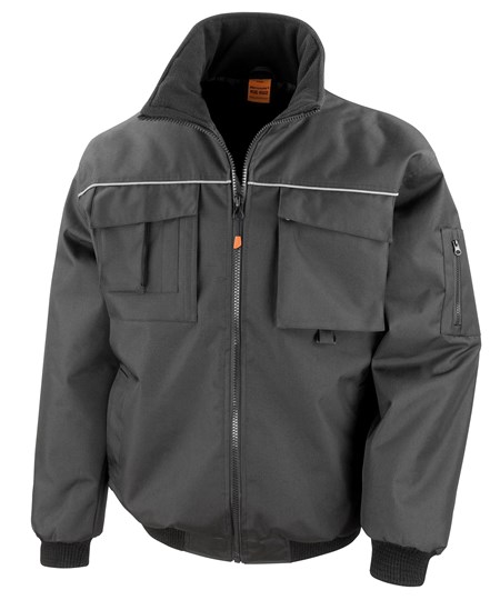Auf diese Arbeitsjacke im Blousonstil aus extrafestem Stoff für Langlebigkeit und Festigkeit kann niemand, der harte Arbeit zu leisten hat, verzichten! Das überzeugendste Argument der Sabre-Pilotenjacke mit den versiegelten Nähten, reflektierenden Paspeln und elastischen Arm- und Bundabschlüssen für mehr Komfort ist die zur Hälfte abnehmbare Brusttasche, wodurch ein leichter Zugang zum Bedrucken oder Besticken garantiert ist. Dies und die austauschbaren und damit an die Unternehmensfarben anpassbaren Reißverschlussschieber machen die R300X unschlagbar, und das auch noch zu einem erfreulichen Preis.