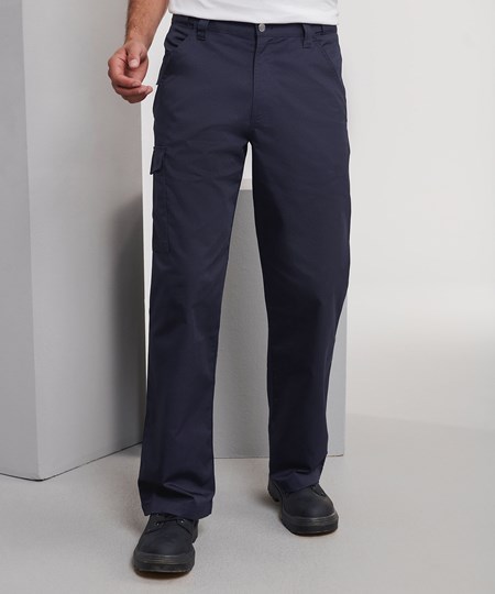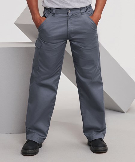 Zeitgemäß gestaltete Hose mit elastischen Taillenbund für bequemen Sitz; für vielfältige Einsatzbereiche geeignet.