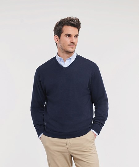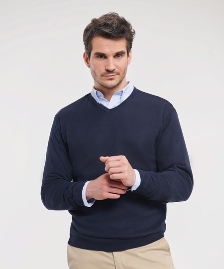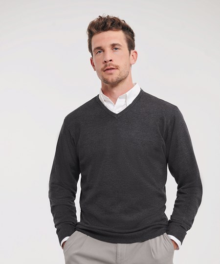 Dieser klassische pflegeleichte Pullover mit V-Ausschnitt ist ideal mit Hemd oder T-Shirt kombinierbar.