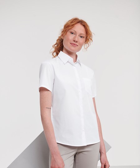 Women's short sleeve polycotton easycare poplin shirt