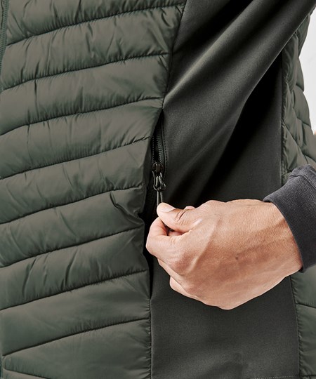 Leichte thermische Effizienz. Die Montserrat-Weste hilft Ihnen mit einem leichten, gesteppten Körper und elastischen Seiteneinsätzen beim Aufwärmen in feuchten und kalten Umgebungen. Eine PFC-freie, dauerhaft wasserabweisende Ausrüstung auf dem Hauptteil hilft, Wasser bei feuchten Bedingungen abzuweisen. Der Kinnschutz und der verstellbare Saum mit Kordelzug ermöglichen eine optimale Anpassung für maximalen Komfort. Die Montserrat-Thermoweste besteht aus regulärem und recyceltem Polyestergewebe, um den ökologischen Fußabdruck zu reduzieren.