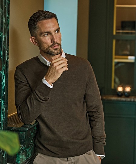 Eine klassische Rundhals-Strickweste aus hochwertigem italienischen Merino-/Polyacryl-Mischgewebe. Dank ihres Rippenmusters und ihres runden Kragens lässt sie sich perfekt mit Hemden oder coolen T-Shirts kombinieren.