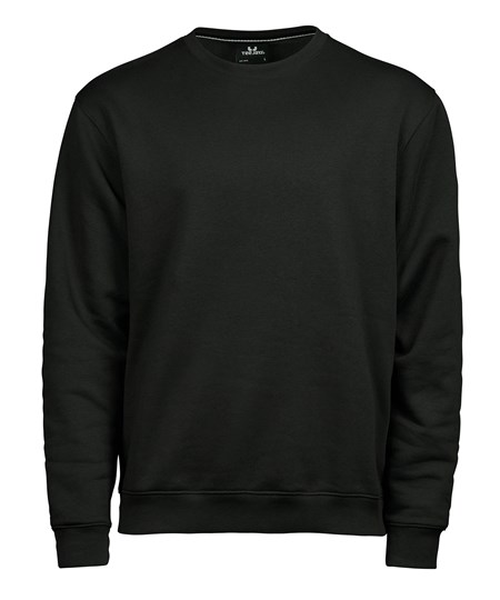 Ein solides, klassisches Sweatshirt mit Rundhalsauschnitt aus gebürstetem Gewebe mit elastischen Ärmelbündchen mit doppelten Nähten, Rippstrickeinfassung am Halsausschnitt und Saum. Das ideale Sweatshirt für die Arbeit oder die Fahrt zum Sport.