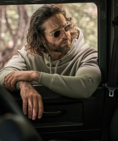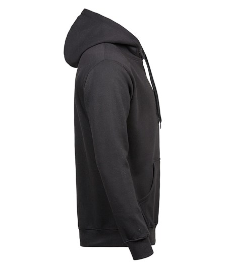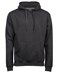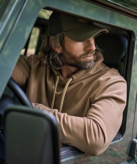Dieses solide Kapuzen-Sweatshirt zeigt sich mit einer großen Vordertasche und einer einstellbaren Kapuze, Kapuze und Saum sind mit elastischen, doppelt vernähten Abschlüssen ausgestattet.